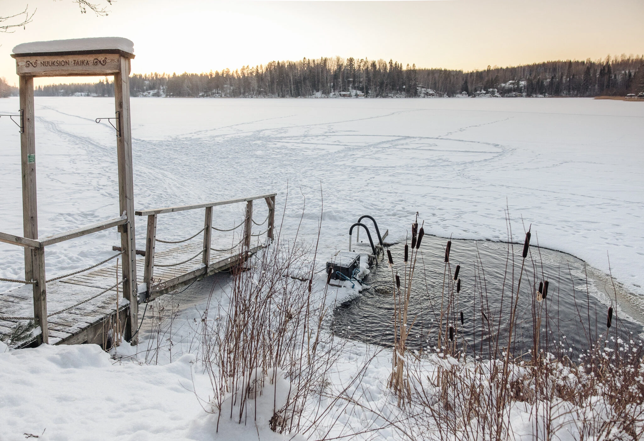Laiturilta pääsee uimaan ja talvella avantoon. Veden syvyys laiturilta n. 1,5 m.