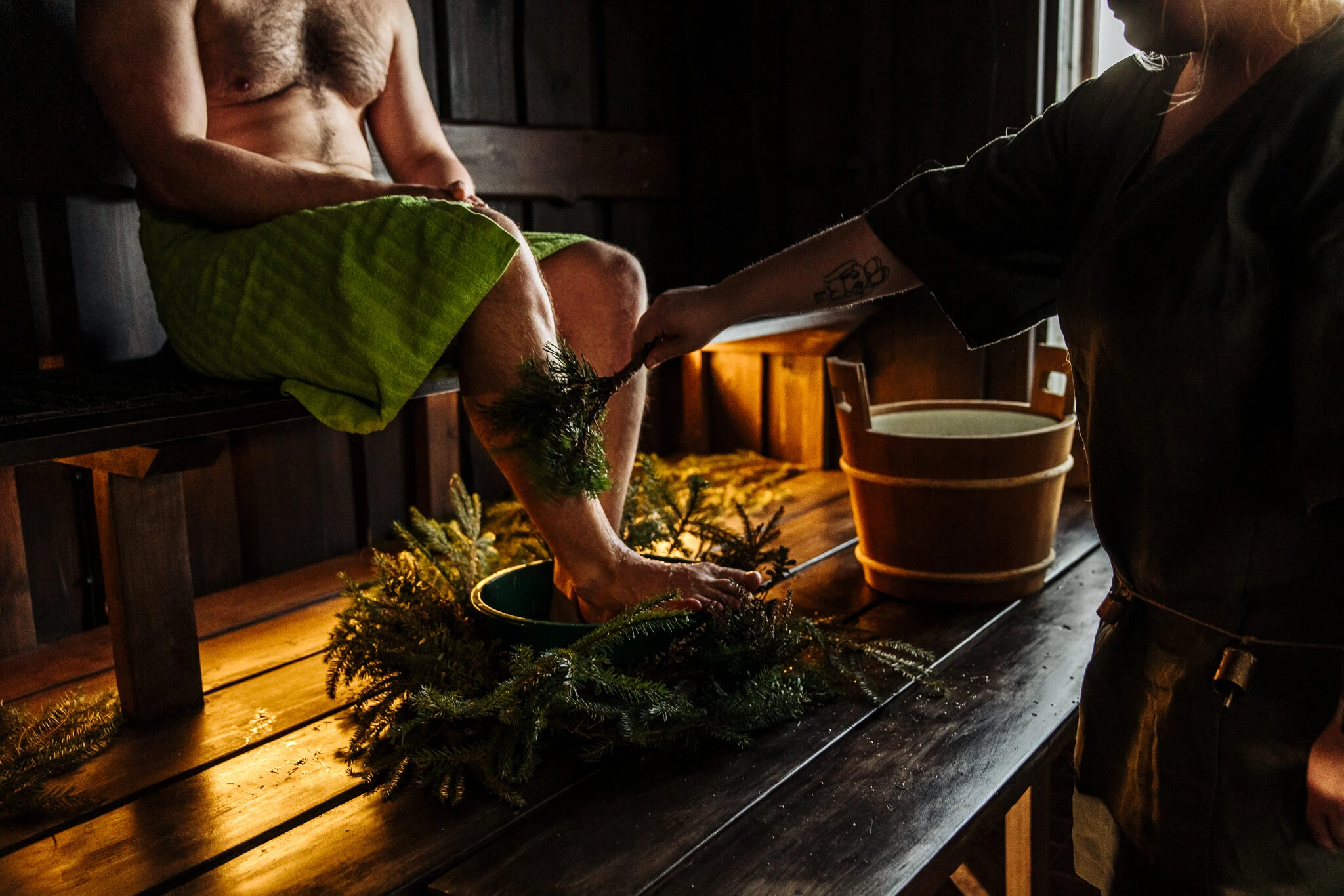 Koe Villa Paratiisin puusaunan lempeät löylyt, tunne saunan taika, virkisty järven viileydessä ja ota vastaan luonnon yrttien hoitava voima ohjatussa jalkakylvetyksessä. Rentouttavan saunakokemuksen jälkeen nauti metsän ja kauden antimista koottu sauna-tarjoilu. Sinulla on myös mahdollisuus ostaa yrttihoitoon käytettyjä tuotteita kotiin viemiseksi. Lähde uuteen viikkoon paratiisin puhtaalla mielellä ja keholla. Tervetuloa mukaan! ✨🌿